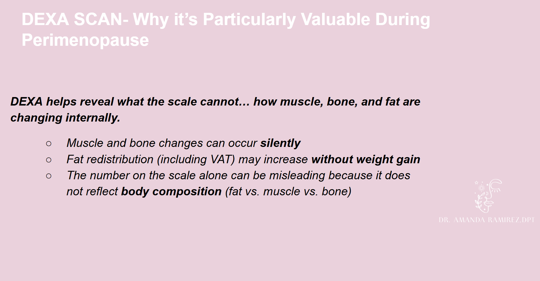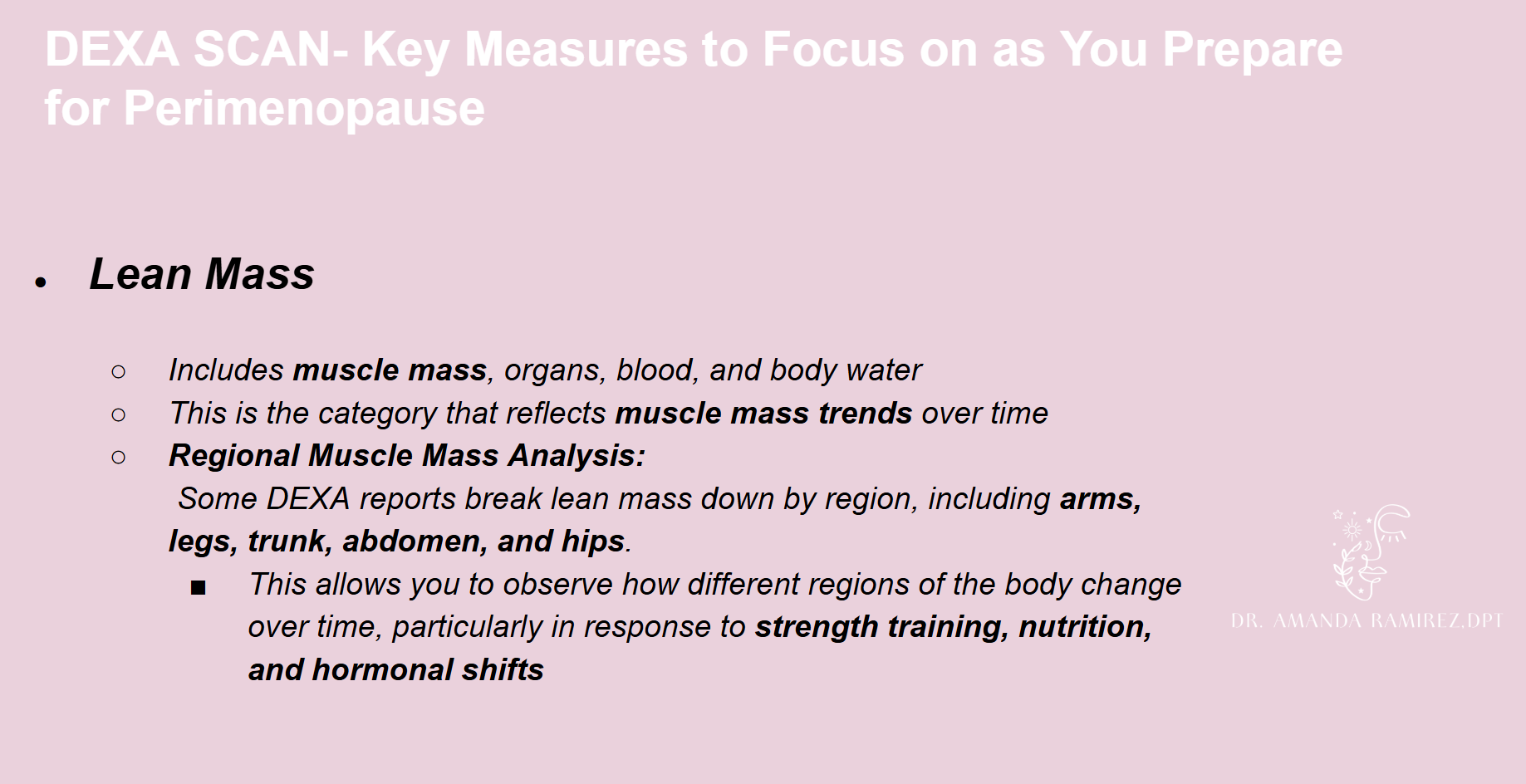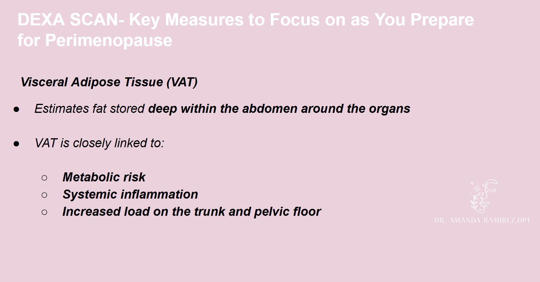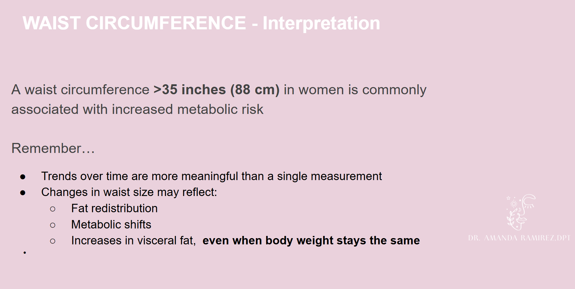 Preparing for perimenopausestrength | pelvic health | fertility RESOURCES dr. amanda ramirez, dpt 1. WAIST CIRCUMFERENCE 2. dEXA SCAN/BODY COMPOSITION 3. STRENGTH TESTING 1 REP MAX GUIDE 4. FUNCTIONAL STRENGTH TESTING (5xsts) 5. KEY TAKEAWAYS 6. MORE SUPPORT CONTACT DR. RAMIREZ PELVIC REHAB LOCATOR APTA LOCATOR CONTACT DR. RAMIREZ PELVIC HEALTH COACHING W/ DR. RAMIREZ PELVIC HEALTH COACHING INTAKE PELVIC HEALTH COACHING PACKAGE PELVIC PT VS. COACHING CATHOLIC PELVIC HEALTH COACHING 7. video resources 8. i’m ready for more !